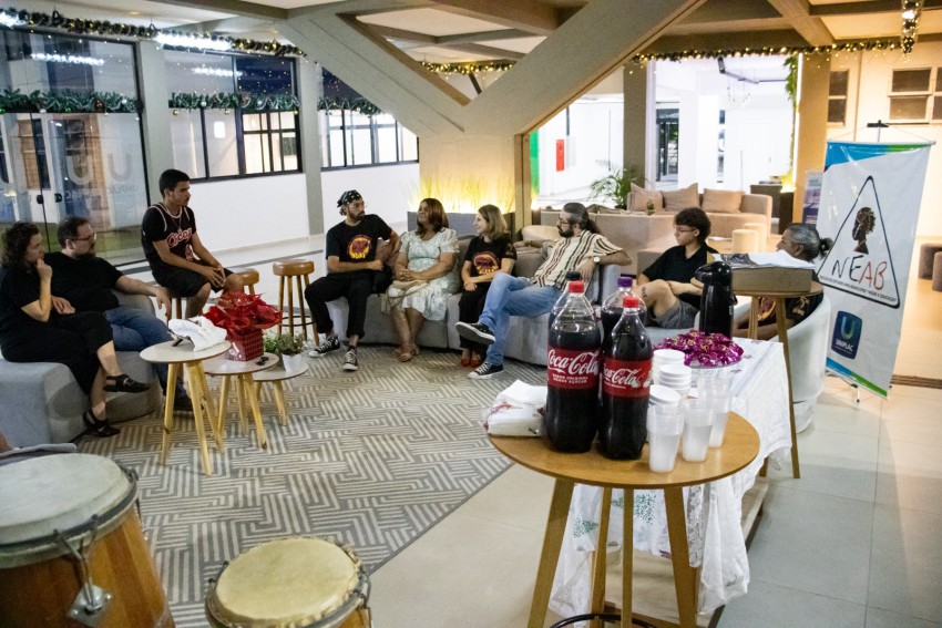 Na noite de 8 de dezembro, o hall de entrada da Universidade do Planalto Catarinense (Uniplac) recebeu o evento de encerramento das atividades de 2025 do Núcleo de Estudos Afro-Brasileiros e Indígenas (NEABI). O encontro reuniu participantes em um momento de celebração, memória e reafirmação do compromisso da instituição com a promoção da igualdade racial e o respeito à diversidade.